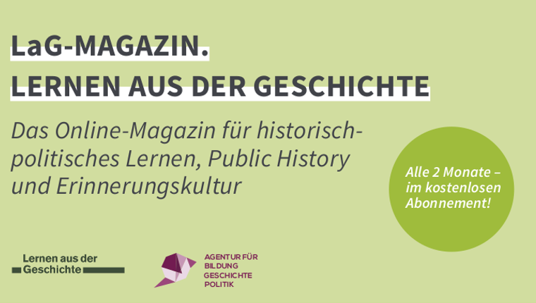 Die Agentur für Bildung, Geschichte und Politik e.V. (Berlin) betreibt unter dem Namen „Lernen aus der Geschichte“ (LaG) ein Online-Magazin und ein Bildungsportal. Geplant ist die Förderung von drei Ausgaben des LaG-Magazins zu den Themen „Straße als Ort demokratischer Aushandlungsprozesse“, „Erinnern an und Lernen aus 1848/49: Der 18. März als nationaler Gedenktag?“ und zum Thema „Geschichte wird gemacht: Geschichtspolitik und Vermittlung von Demokratiegeschichte an umkämpften Orten“. Voraussichtliche Veröffentlichung Dezember 2024, Frühjahr und Herbst 2025.
