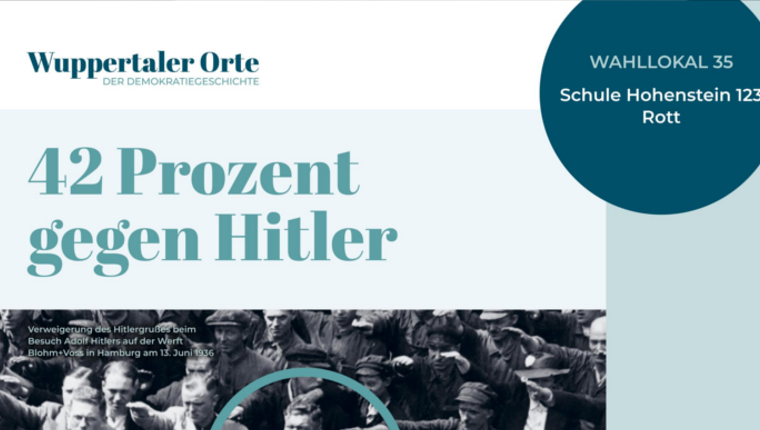 Das Projekt "Wuppertaler Wahllokale als Orte der Demokratiegeschichte" macht sechs historische Orte in Wuppertal als Orte der Demokratiegeschichte sichtbar, die im Zusammenhang mit der Volksabstimmung am 19. August 1934 stehen, bei der 42% der Wählerinnen und Wähler in Wuppertal gegen das NS-Regime stimmten. Das Projekt würdigt die Widerständigkeit der mutigen Minderheit, indem es die Widerstandsgeschichten aus verschiedenen Stadtteilen rekonstruiert. Die Ergebnisse werden in einer mobilen Ausstellung in den Stadtteilen, an Schulen, bei Vereinen und online gezeigt. Es finden begleitende Veranstaltungen statt.
